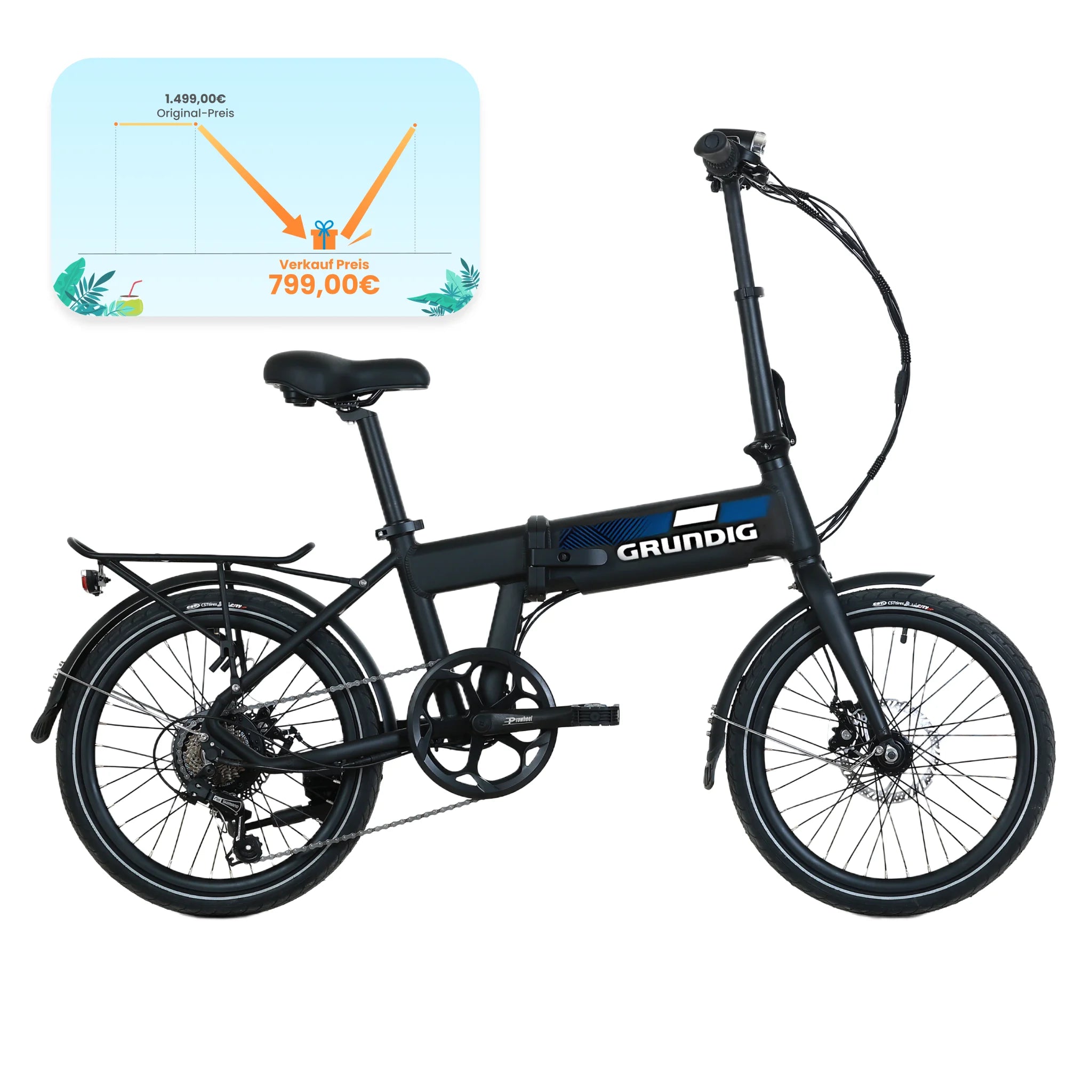 Ano, GRUNDIG E20 je skládací. Ať už bydlíte v malém bytě, chcete si uložit kolo v kanceláři nebo si ho chcete vzít s sebou na dovolenou – kompaktní skládací design vám poskytuje maximální flexibilitu. Během několika sekund můžete elektrokolo složit a uložit, abyste ušetřili místo.